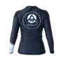 Women's Alavanca longsleeve rashguards. Six-panel construction with tapered side panels for optimal fit. Made out of four-way stretch polyester fabric for comfort and durability. Fully sublimated logos that won't fade or peel. V-neck design for maximum comfort during training.